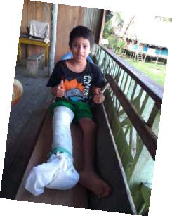 victor with leg cast